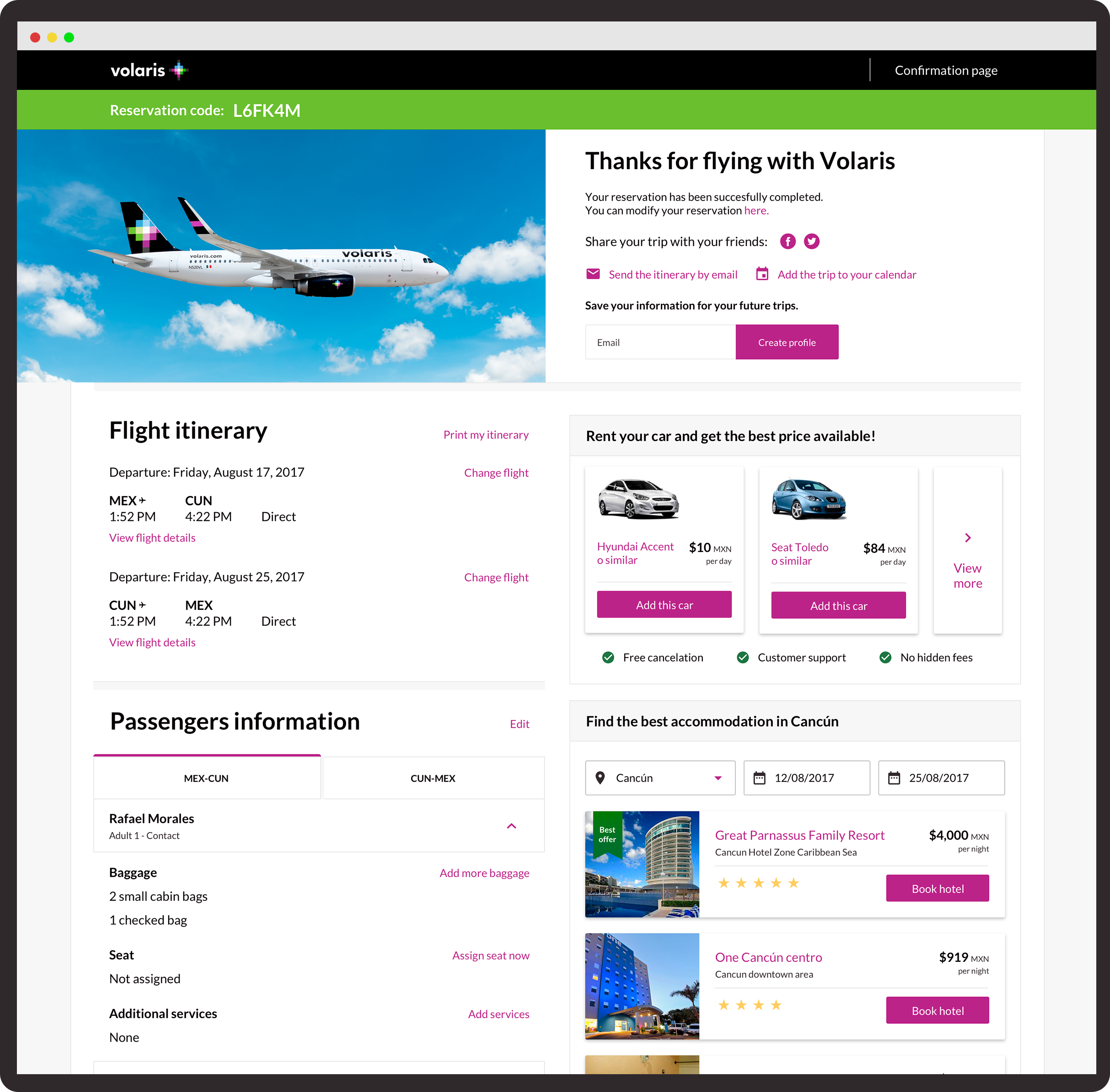 Moving forward, clients can access their booked trips, and manage their bookings. Offering them the chance to modify itinerary, add extra services or checkin from web and save time.
